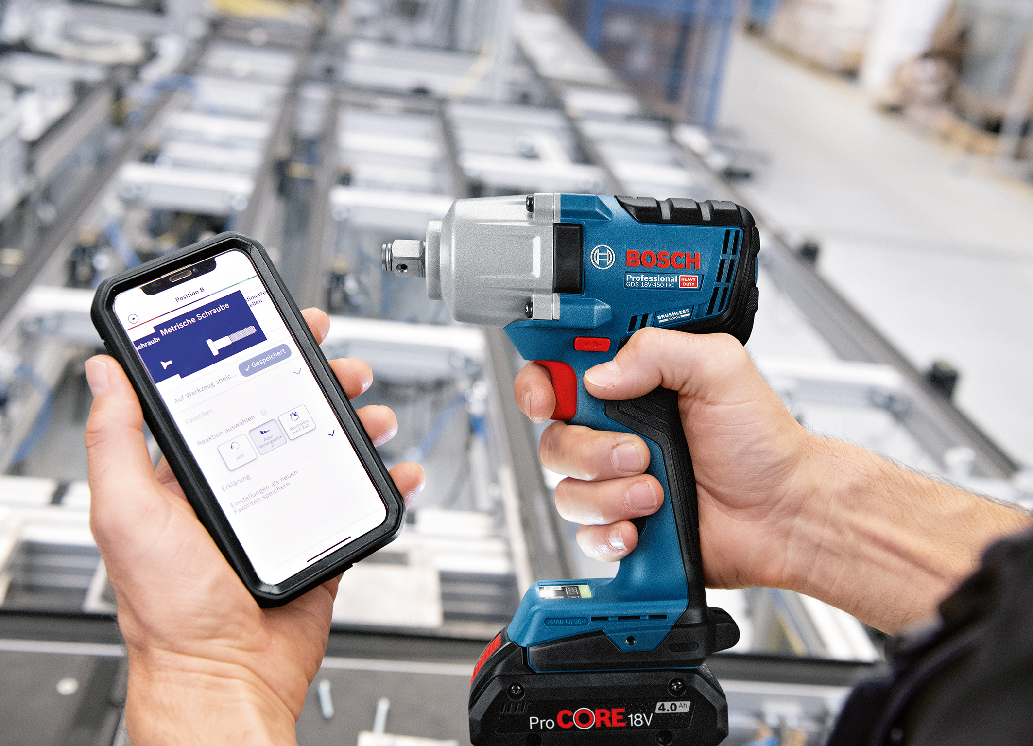 Bosch rozšiřuje svůj systém Professional 18V uvedením GDS 18V-450 HC Professional – výkonného akumulátorového rázového utahováku s funkcemi připojení. Tento nový nástroj poskytuje profesionálům plnou kontrolu a flexibilitu při práci s kovem a dřevem. Utahovací moment 800 Newtonmetrů umožňuje povolit dokonce i rezavé šrouby a šrouby na užitkových vozidlech, jako jsou dodávky a SUV. S utahovacím momentem 450 Newtonmetrů je rázový utahovák také první svého druhu, který je vhodný pro předvrtané betonové šroubové spoje o rozměrech až osm milimetrů. Typické aplikace zahrnují upevnění podpěr balkonu nebo přístřešku pro auto přímo do betonu nebo montáž podpěr pro kabelové kanály nebo prvky bednění.